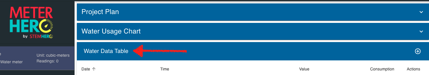Scroll down and click on the “Data Table” to add readings